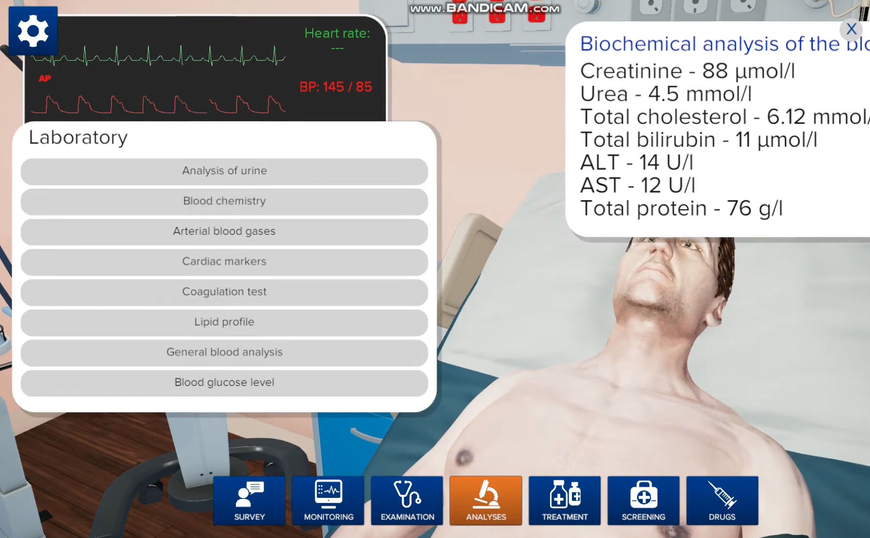 Im Fall falscher Behandlungen, bekommt der Teilnehmer eine Rückmeldung, dass dies den Patienten schädigen würde.