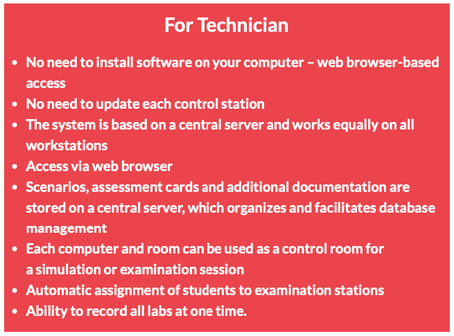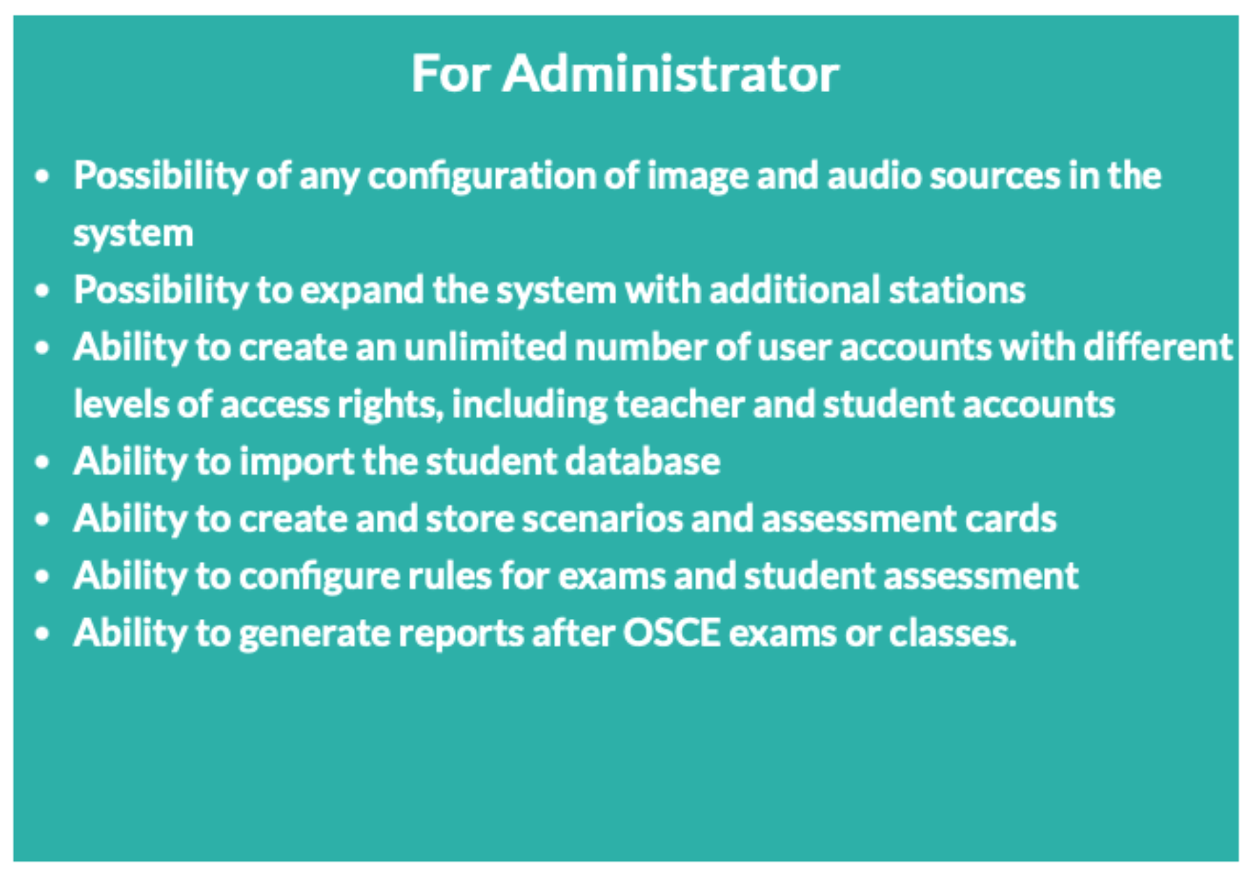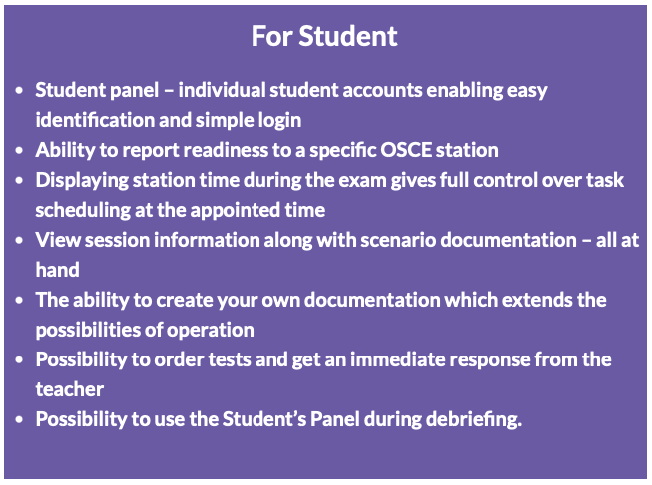 Medcam is an intuitive system for debriefing and OSCE exams, created on the basis of the latest technologies and the knowledge and experience of management staff, technicians and medical simulation instructors. Medcam is not only an audio-video recording based debriefing system. It is also a comprehensive tool for administering scenarios, assessment cards or exams.